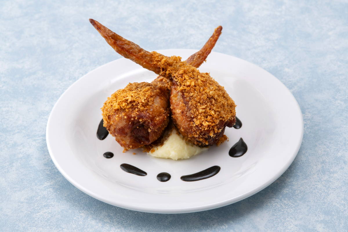 手羽餃子に自家製ミックススパイスをまぶし、スパイシーに仕上げた一品。マッシュポテト、黒胡麻ソースと一緒に味わってみて。「ワインセット」または「クラフトビールセット」と一緒に楽しめる「テイスティングセレクション」1800円もあります。