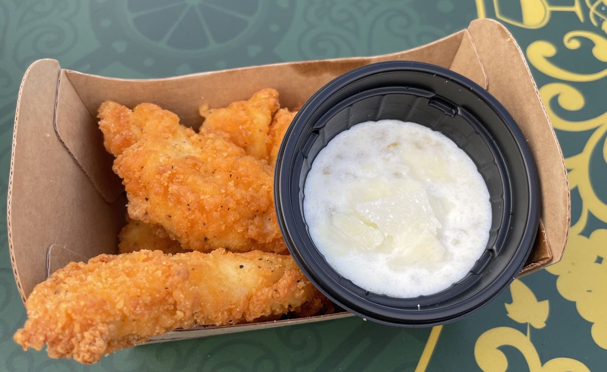 「チキンテンダー、ヨーグルト&オリーヴディップ」650円【ザンビーニ・ブラザーズ・リストランテ/メディテレーニアンハーバー】