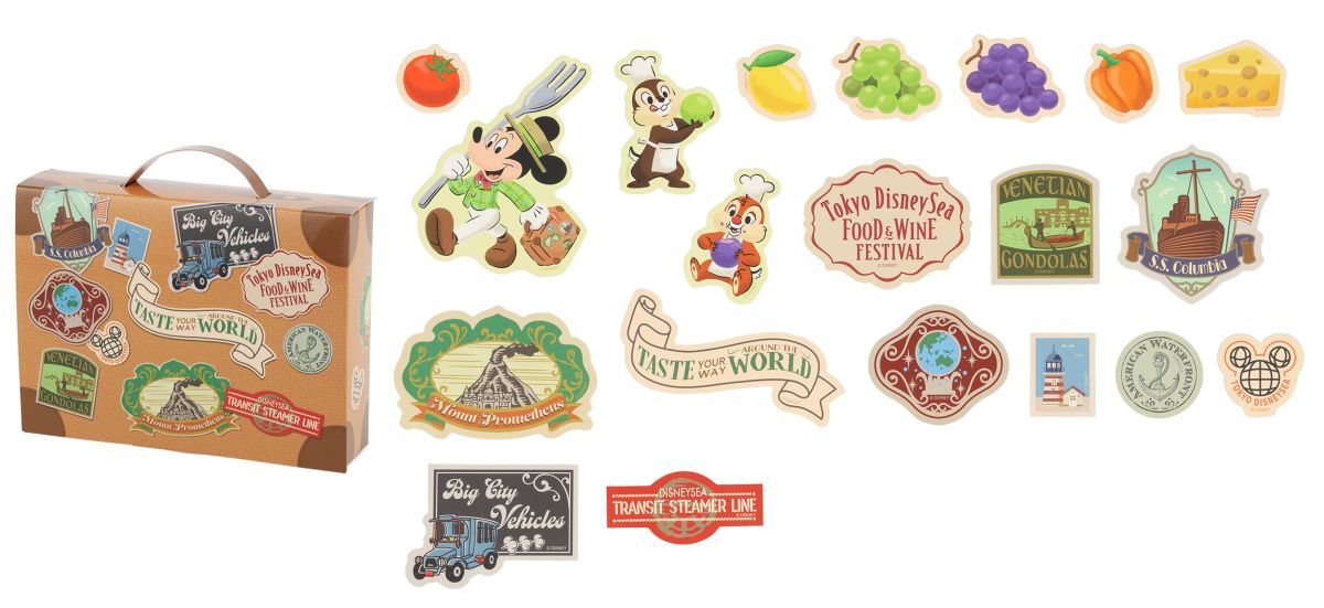 クッションやタンブラー、きんちゃくなど定番グッズも「東京ディズニーシー・フード&ワイン・フェスティバル」デザインで登場。シールセットやメモセットなどのステーショナリーのほか、コレクションしたくなるデコレーションマグネットも発売されます。