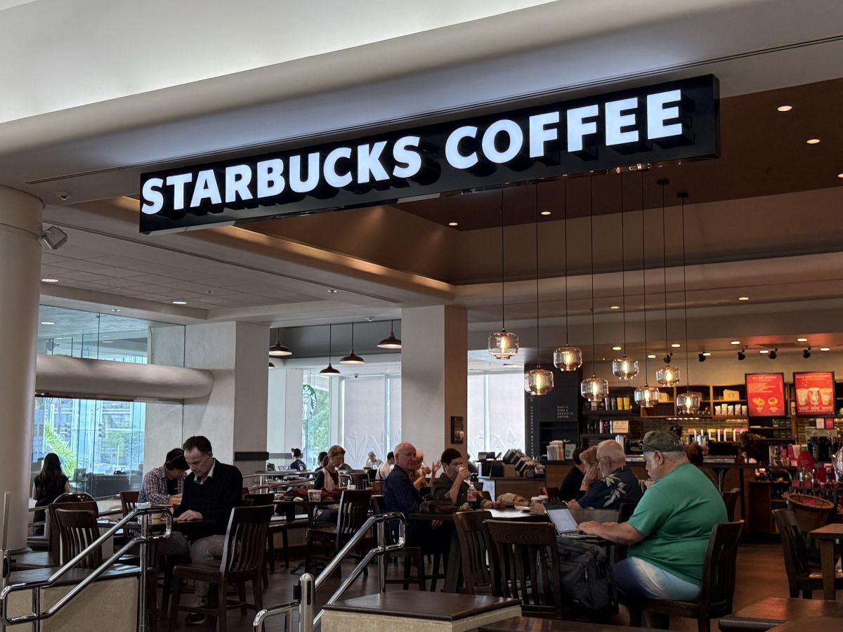 まず、朝食や軽食に便利なのが「スターバックス」。館内にあるため、朝のコーヒーを買いに行くのも楽々。観光前に立ち寄って、コーヒーとペストリーをテイクアウトするのもおすすめです。
