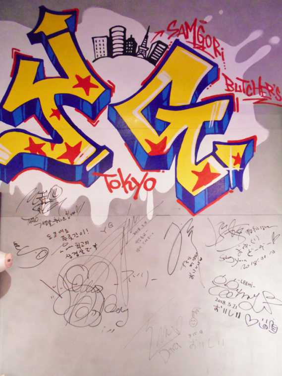 入口すぐの壁には、なんとYG ENTERTAINMENTに所属するアーティスト BIGBANGのメンバーV.IさんやWINNERメンバーのサインが!同じお店で食事ができると思うとやっぱり嬉しいですね。