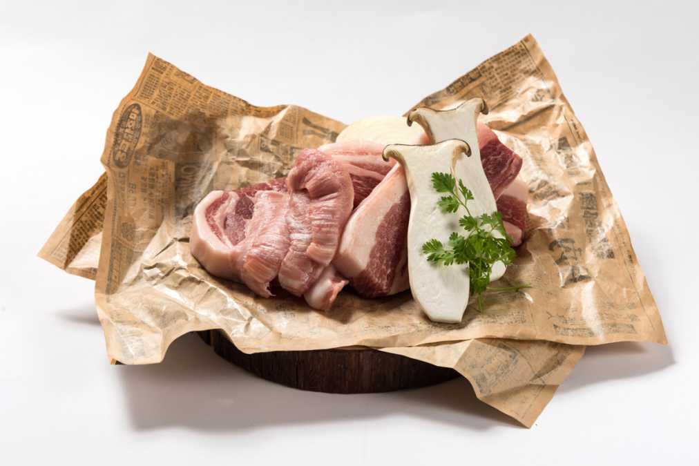 いよいよお待ちかねのサムギョプサル。おすすめは、豚バラ、肩ロース、豚トロの3種がのった「プジュッカン ハンパン(豚肉盛り合わせ2人前)」(3980円)。国産の豚肉を独自の製法で熟成させており、柔らかく肉厚でジューシーな旨味のあるお肉です。
