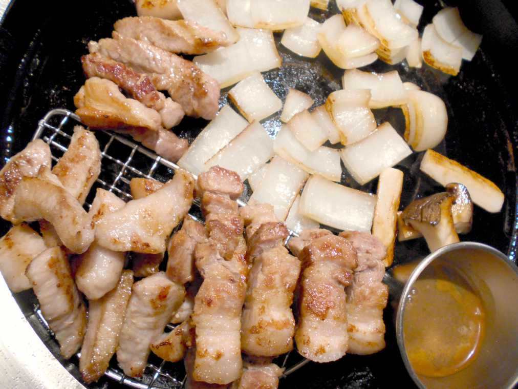 サムギョプサル用の鉄板で店員さんが手際よく焼いてくれるので、待っているだけでOK。ジュージューとお肉の焼ける音を聞いているだけで、食欲が増していきます!