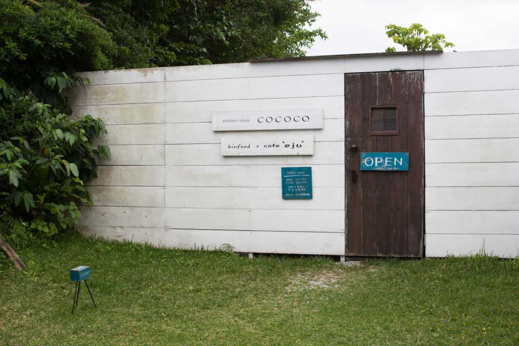 芝生の奥には、陶器の制作アトリエと雑貨ショップ「COCOCO(コココ)」。その傍に、binfoodがあります。店頭に並ぶのは、南国フルーツや季節の野菜などを使った瓶詰めたち。