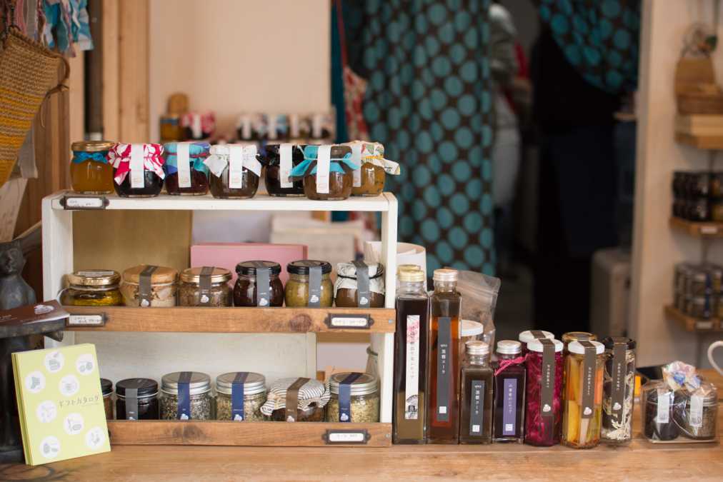 瓶詰めを提供しているのは、飯塚のぞみさんと、加藤恵子さん。「なるべく生産者の顔が見える素材、自然栽培で作られたものをひとつひとつ丁寧に瓶詰めにしています」とのぞみさん。地域の農家さんたちが旬の野菜を持ってくる度に、その素材を使ってどんな瓶詰めができるか、ワクワクしながら商品を考案していくのだとか。