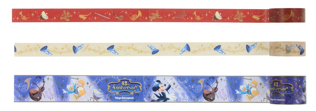 毎年開園日に発売されるアニバーサリーデザインのグッズたち。2025年4月15日(火)から新発売される東京ディズニーランド開園42周年を記念したグッズは、聴いても見ても楽しい魔法のコンサートが楽しめるファンタジーランドの「ミッキーのフィルハーマジック」がモチーフ♪コンサートに登場するミッキーマウスやドナルドダック、楽器や音符がデザインされたユニークなデザインのグッズでみんなも一緒にお祝いしましょう!©Disney