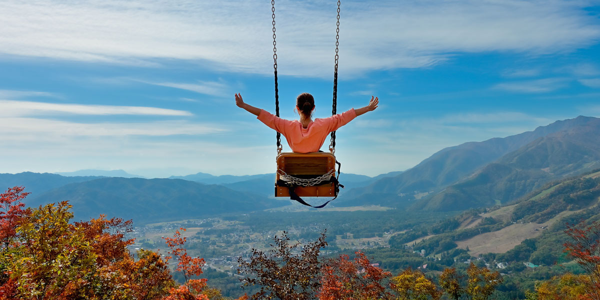 標高1100mの絶景を目の前に、開放感とスリルを味わえる超大型ブランコ「白馬ジャイアントスウィング(はくばじゃいあんとすうぃんぐ)」は、国内初の巻き上げ式ブランコ。年齢や体力に関係なくスタートから勢いよく漕ぎ出すことができます。地面から10mの高さと前方約6mの振り幅で、非日常の浮遊感を感じながら、白馬村の田園風景に飛び込むような体験は、まるで『アルプスの少女ハイジ』のよう! 大人も子どもも楽しめる、ここでしか得られない体験をぜひ楽しんでみてください。
