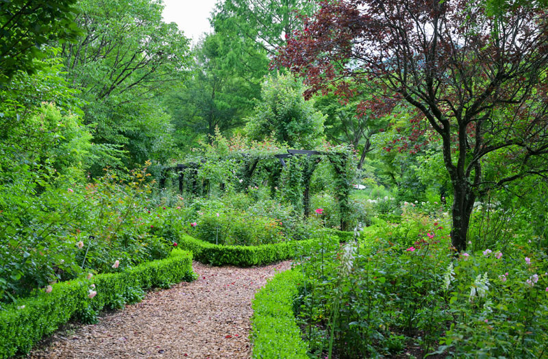 「フレグランスローズパス」は、その名の通り、優雅なバラの香りが楽しめる小道。華やかで甘いオールドローズ(ダマスク)の香り、さわやかなフルーツのような香りなど、香りのタイプ別に4つにエリア分けされているのがユニークです。