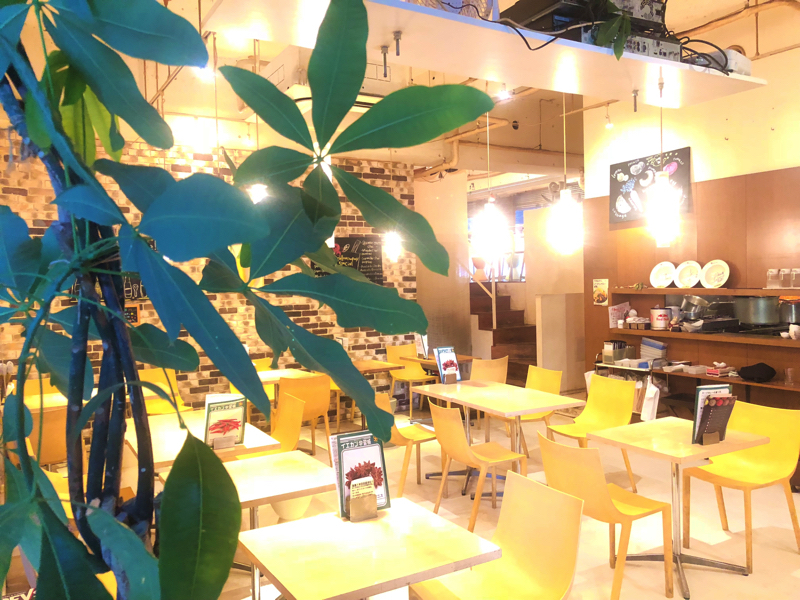 扉を開けると、店名にもあるように店内は黄色、黄色、黄色…! カレー専門店ですが、カフェのようなおしゃれな空間になっています。