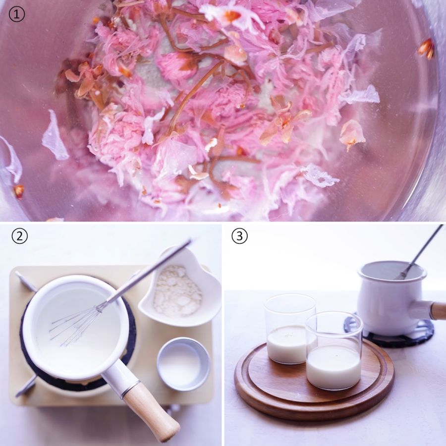 | ✓桜の塩漬け…30g (杏仁豆腐) ★杏仁霜…10g ★グラニュー糖…25g ★アガー…5g ✓牛乳…250g ✓生クリーム…40g (桜のジュレ) ★グラニュー糖…20g ★アガー…5g ✓水…200g ✓(あれば)リキュール(桜、桃など)…大さじ1 |