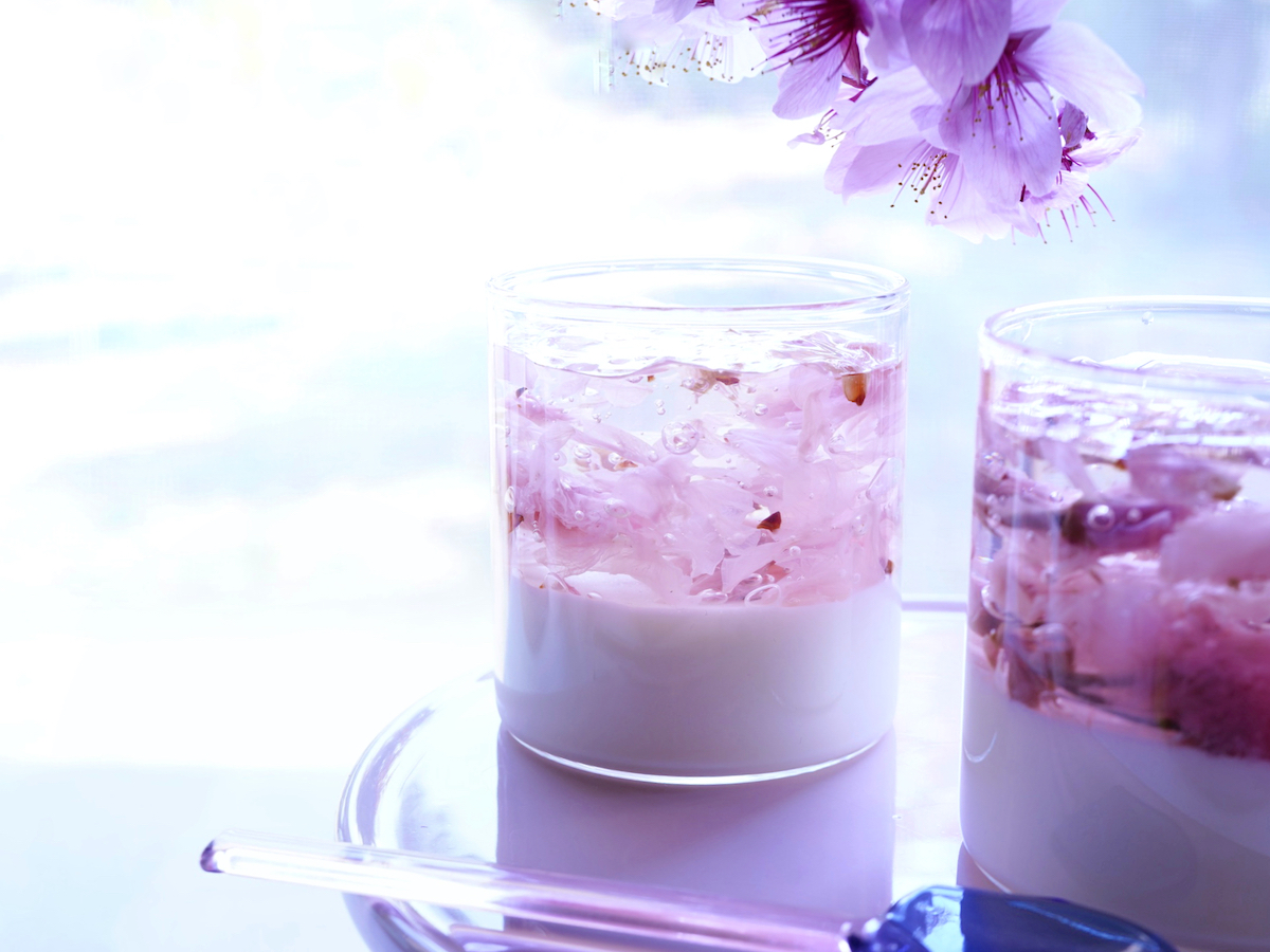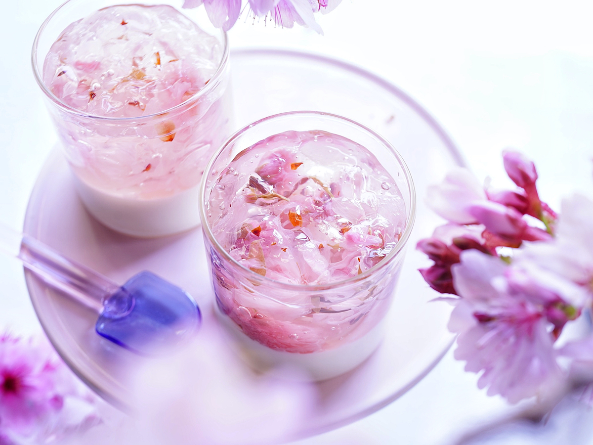庭の桜も咲き始め、いよいよ春の訪れを感じる今日この頃。わが家は、子どもたちが巣立ちの時を向かえるので、いつにもましてうれしい春になりそうです。今回は、そんな喜びの春を、グラスの中に閉じ込めてみました。ちゅるんとなめらかな杏仁豆腐に、キラキラの桜のジュレをかけて。お祝いの席にもぴったりですので、よかったらぜひ作ってみてくださいね。