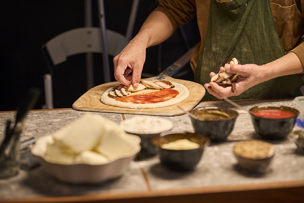 カウンターでピザが焼き上がるまでをライブ感覚で楽しむ