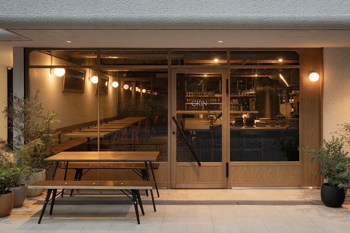 東京メトロ新宿御苑駅から、歩いて1分ほど。新宿御苑を目の前に眺められる気持ちのいいロケーションに「GRIN」はあります。立地にこだわり、4年ぐらい時間をかけて見つかったのが、ここ新宿御苑をフロントに望める場所だったそう。大きな窓から中の様子を見ることができる、入りやすい外観。店内へ入ると、モダンで落ち着いた雰囲気です。
