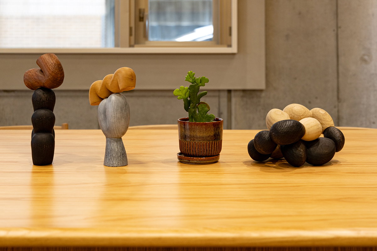テーブルの上に飾られている雑貨は、木でできたオブジェがマグネットでくっつくようになっているという、ユニークなもの。雑貨でもほっこりしすぎずに新しさを表現したいという思いで、置かれているそうです。このように小さな雑貨にもこだわりをもって買い付けられているからこそ、店内の雰囲気が個性的でありつつも、統一感のあるものに。