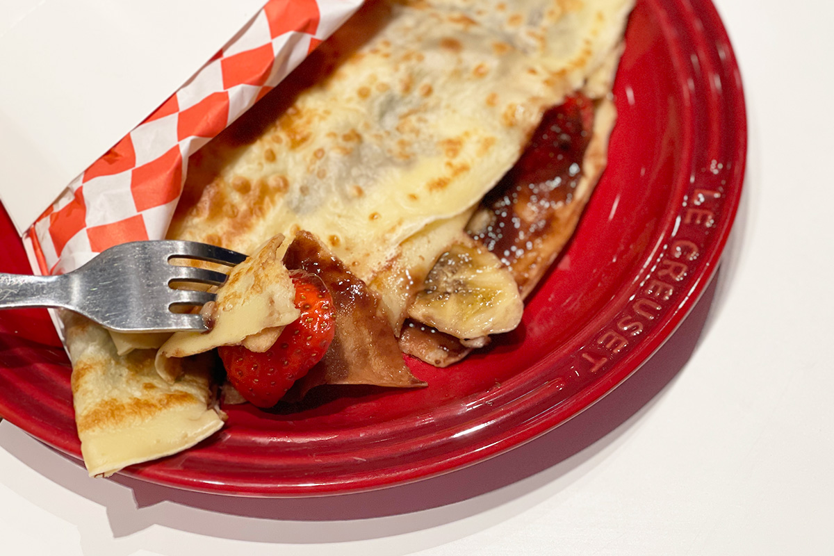 生地はそば粉を使うガレットではなく、小麦粉で仕上げたもちもちのクレープ生地。フランスでは地域によって、クレープの文化が異なるのだとか。
