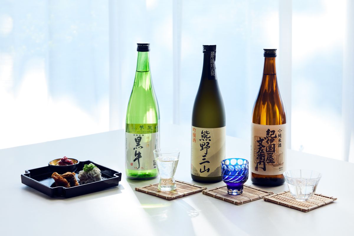 ディナー時も朝食時もドリンクはフリーフロー♪ 朝食でもスパークリングワインが楽しめますよ! そのほか「日本酒3種飲みくらべ」(各80ml)2000円では、上品でまろやかな香りが特徴の「黒牛」、のど越しのよさが魅力の「紀伊國屋文左衛門」、さわやかでスッキリとした飲み口が女性にも人気な「熊野三山」など、和歌山の地酒が楽しめます。