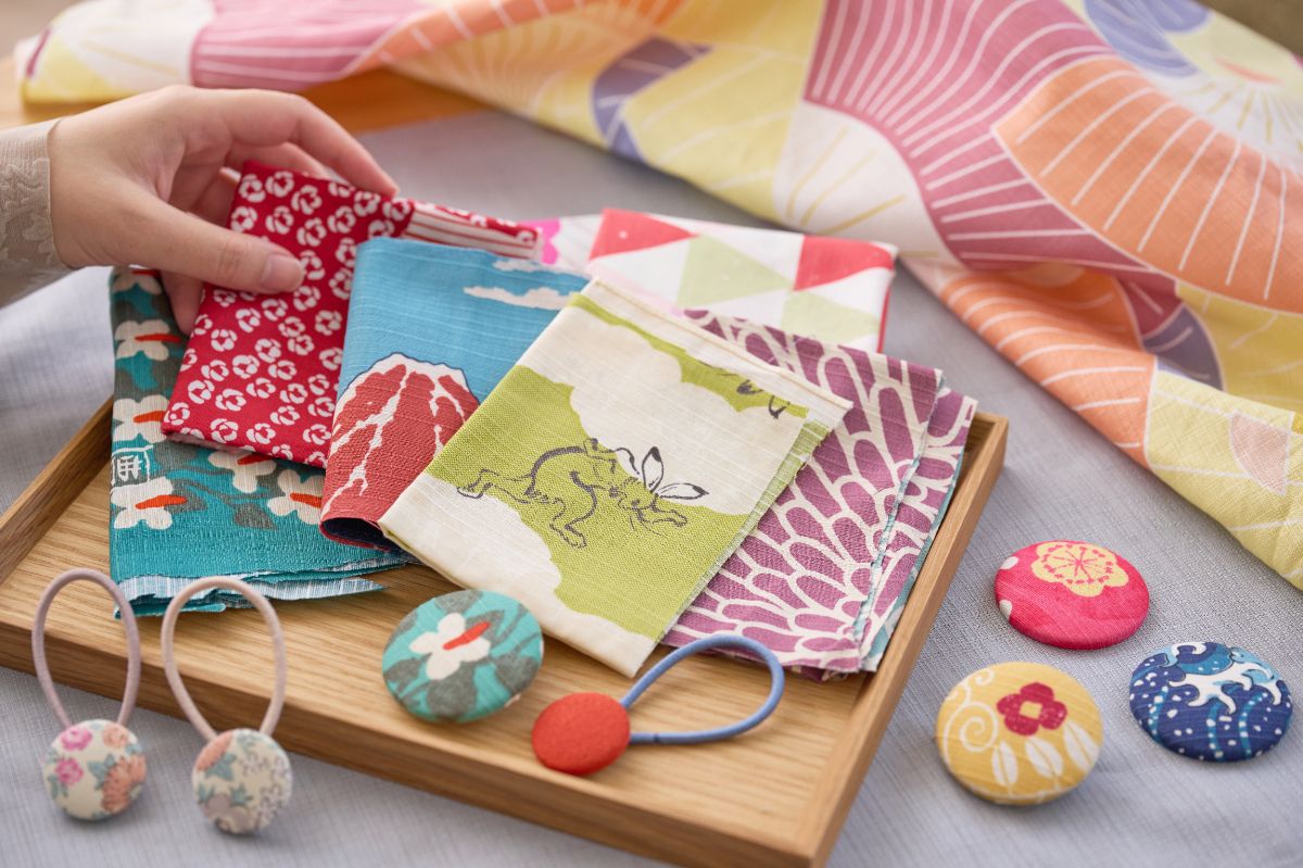 宿泊者なら誰でも体験できる!風呂敷のハギレを活用したヘアゴムや缶バッチづくり
