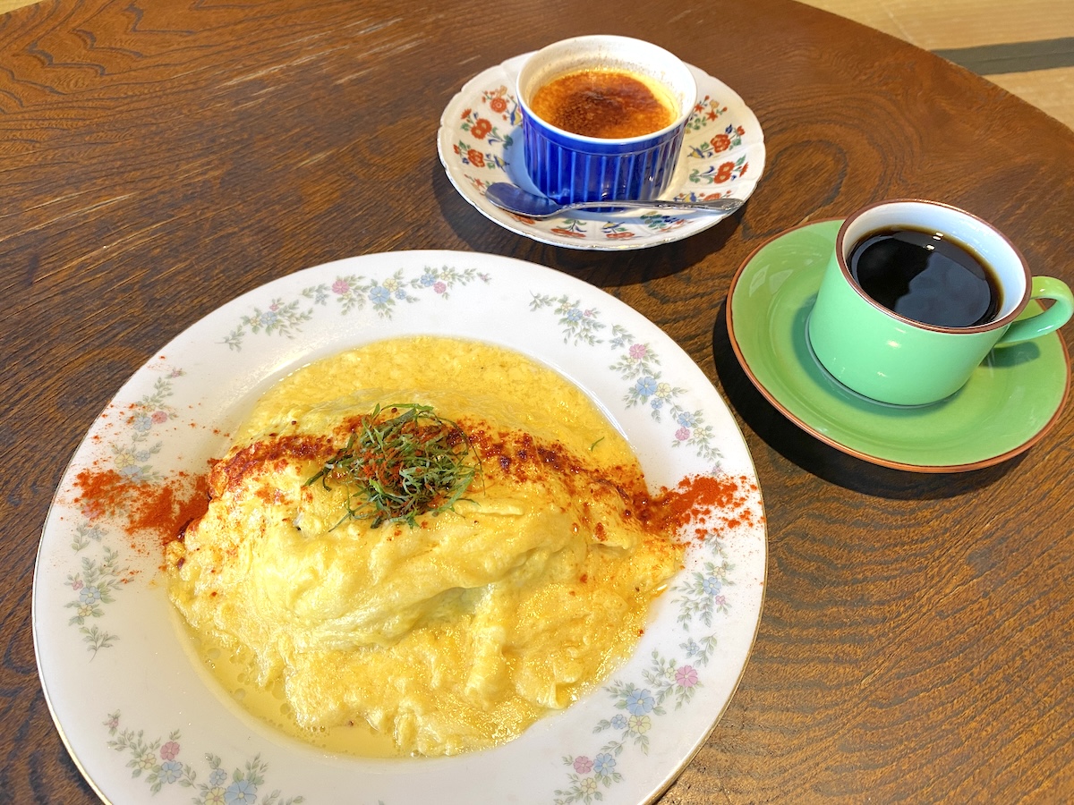 豊富なラインナップが揃うなか、名物とされているのが「オムライス【黒】」1100円(ランチ料金)。「黒」という名の通り、イカスミを使った黒いライスが特徴のオムライスです。具材にはイカやエビを使っていて、魚介のうま味が堪能できます。