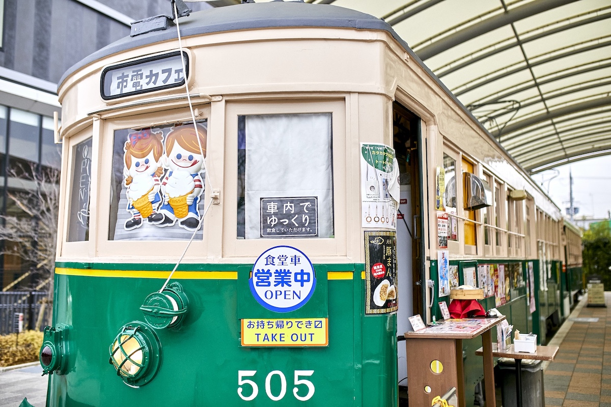 ちょっとマニアックですが、車両には500形・700形・800形・1600形の4種類があり、少しずつ形が違います。「市電カフェ」に利用されている505形は大正時代につくられたものなのだとか。