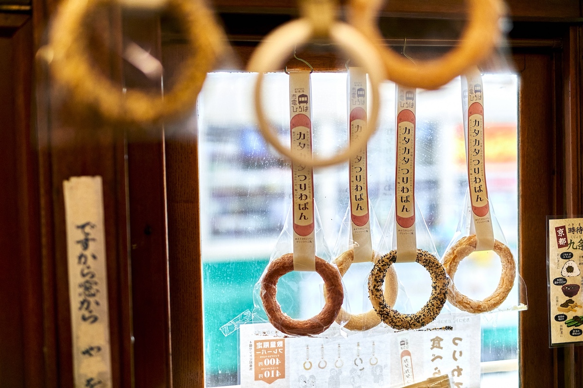 この「カタカタつりかわぱん」、購入して車内でも食べられます。一瞬「プレッツェル?」と思う歯ざわりですが、噛むと違う。ハードブレッドとも違う独特の味わいでおいしいです。フレーバーはシュガー・シナモン・岩塩・ごまの4種類。