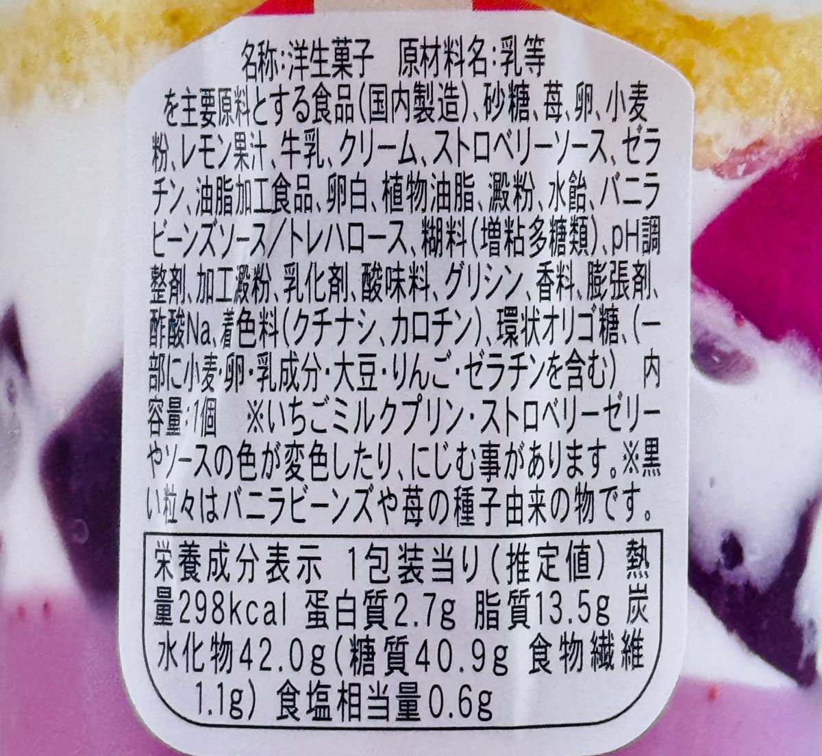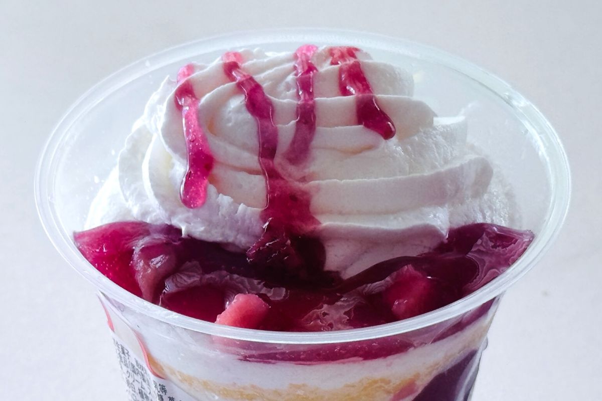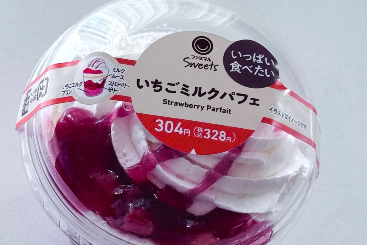 ファミリーマート公式サイトでは、「いちごミルクプリン・いちごゼリー・ミルクムースなどを重ね、カスタード入りクリームにいちごソースを飾ったボリュームがあって食べごたえのあるパフェです」と解説されています。