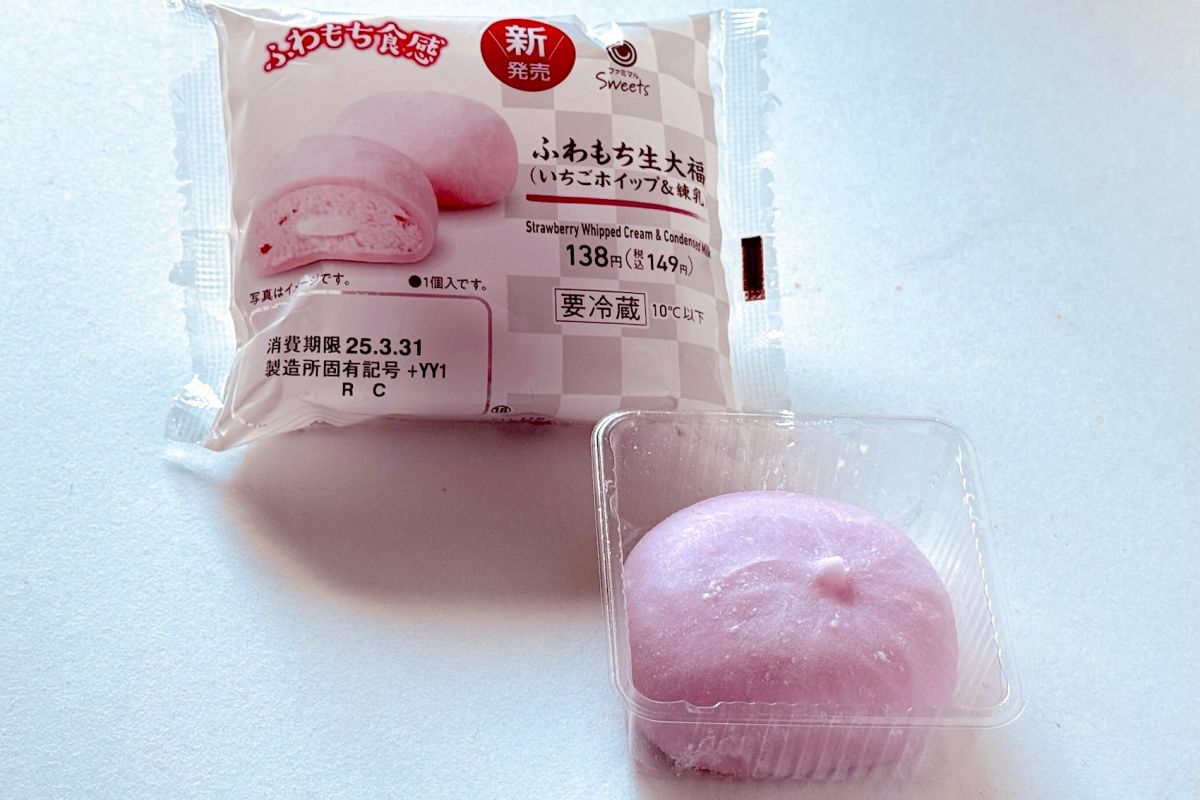 次にご紹介するのは「ふわもち生大福(いちごホイップ&練乳)」149円。