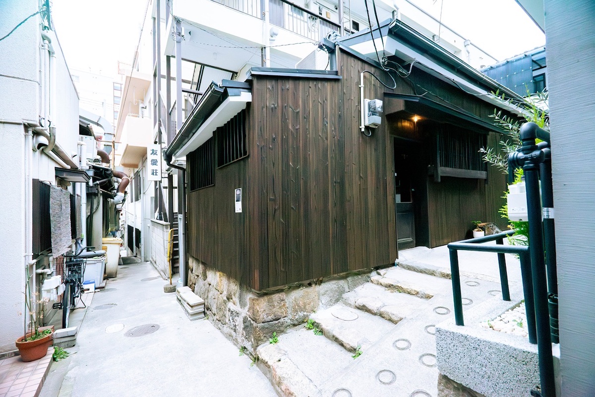 「KOMEMAME」があるのは、Osaka Metro谷町六丁目駅から徒歩約4分の場所。空堀商店街から路地を入ったところに、隠れるように立つ平屋が目的の場所です。