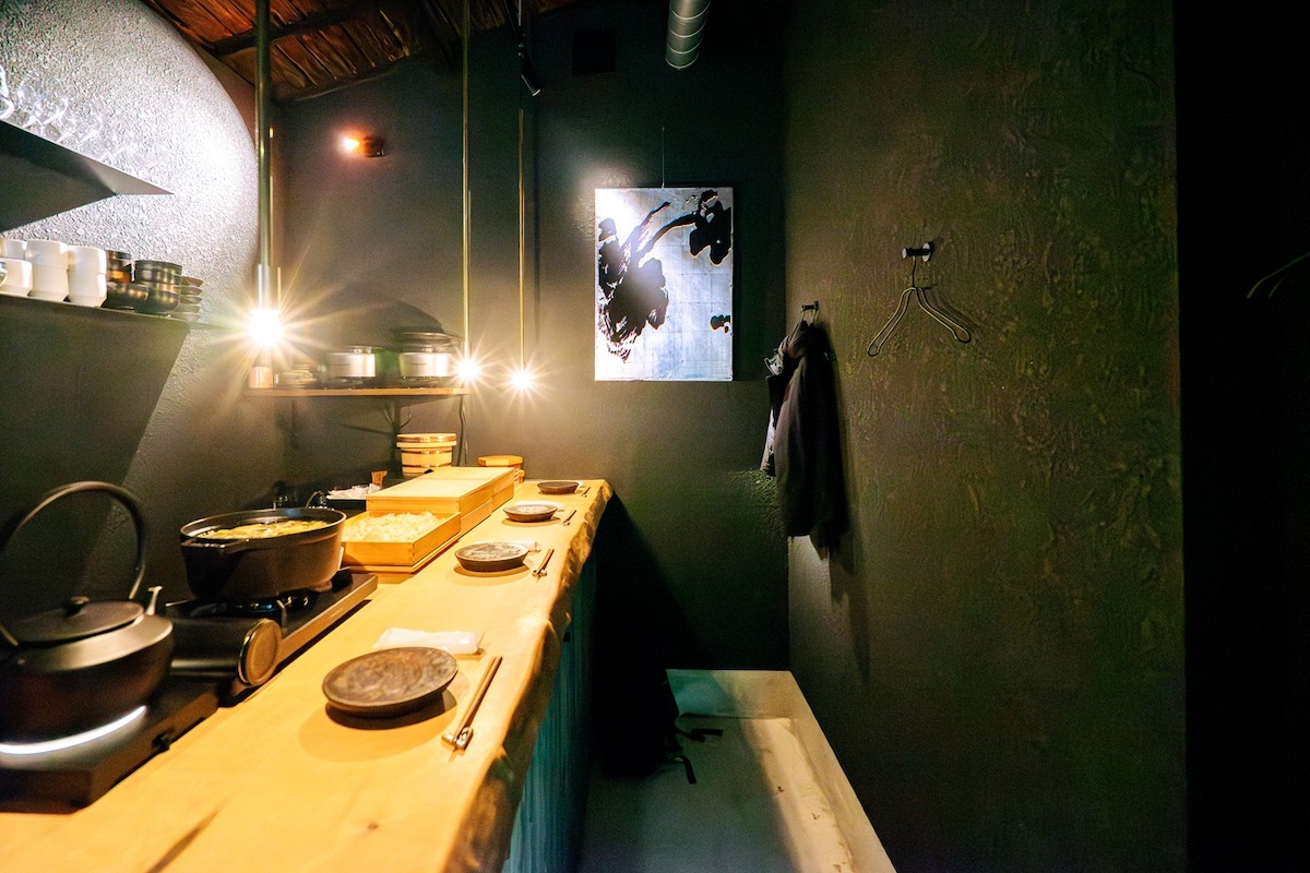 店内は立ち食いスタイルのカウンターのみ。細長いカウンターに6人ほど入ることができる、限られた空間となっています。また照明の明るさをぐっと抑え、しっとりと落ち着いた雰囲気なのも特徴的。いい意味で、従来の“おにぎり屋さん”を連想するようなほっこり感はなく、食にとことん向き合える洗練された空間演出がなされています。