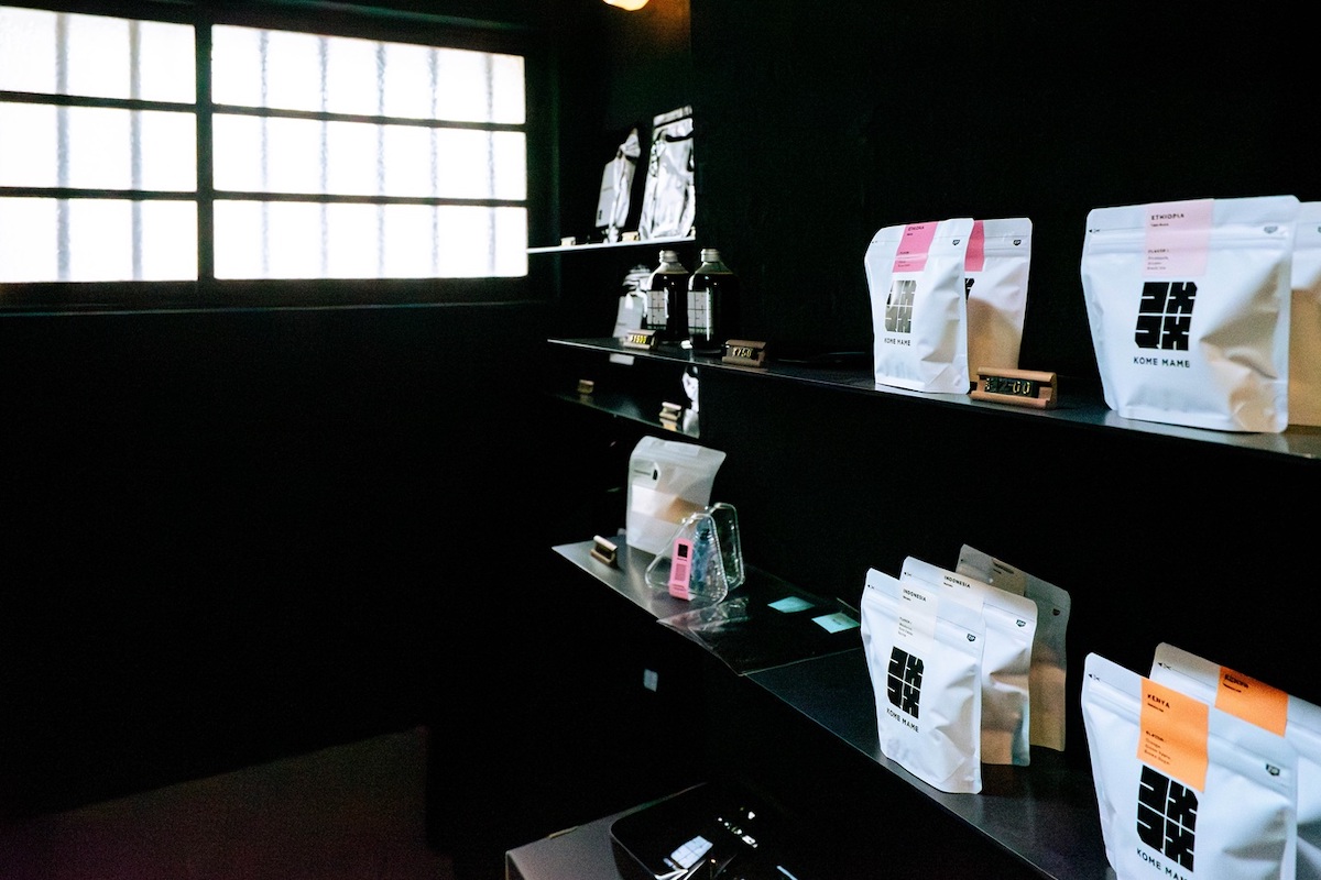 カウンターの反対側には物販のコーナーも。店内で提供しているコーヒー豆やおにぎりに使うのりなどが並びます。いずれもスタイリッシュなパッケージで、手みやげにもぴったり。