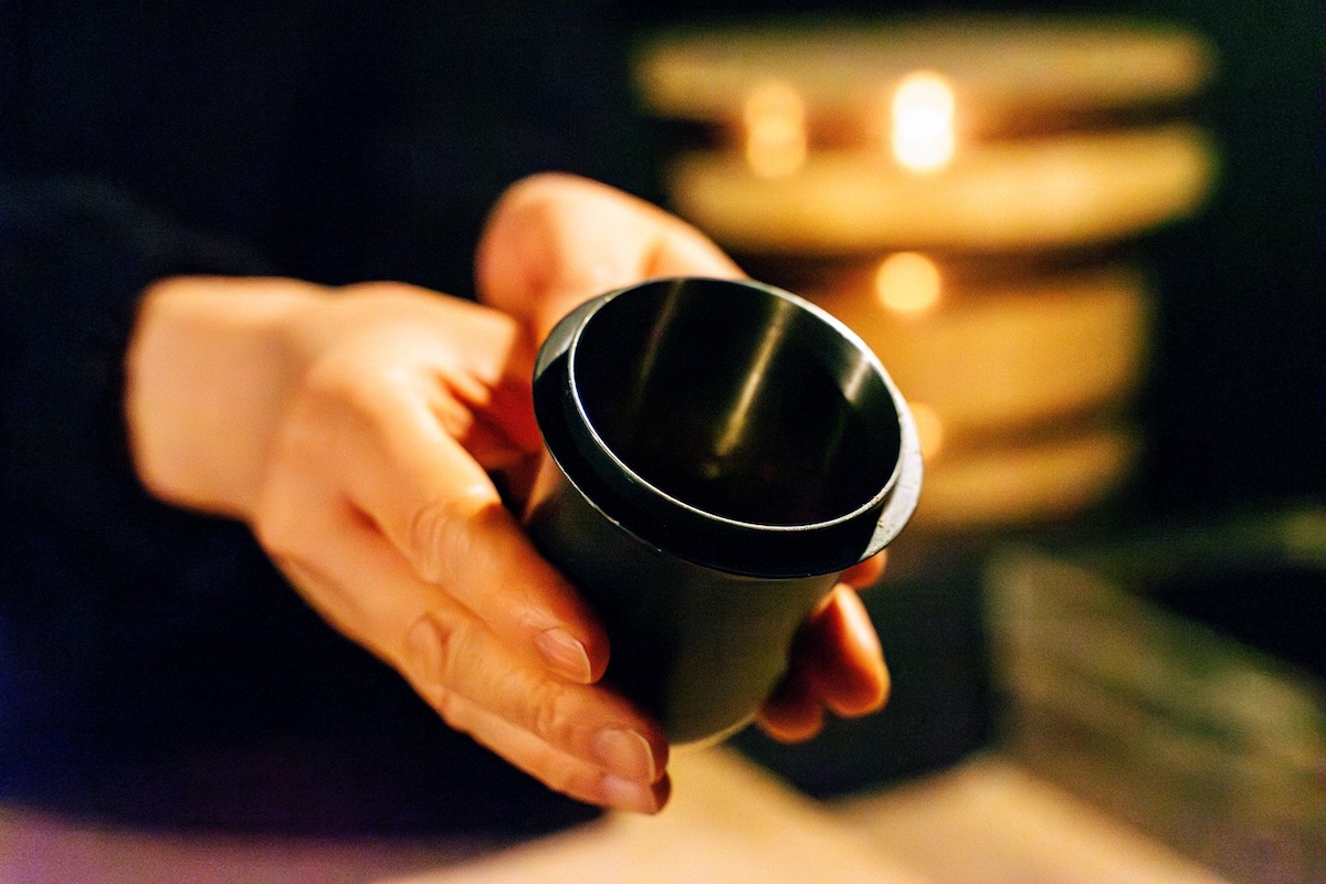 さらにコーヒーを提供する器は「KOMEMAME」のためにオリジナルで開発した伊万里焼のもの。ワイングラスをモチーフに、陶器を極限まで薄くしつつふくよかな香りが広がるようにデザインされています。ふた付きで、飲まないときに香りを閉じ込めておけるのもポイント。