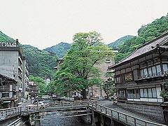 会津の奥座敷とよぶにふさわしい温泉情緒を残しており、木造の老舗旅館から近代的な鉄筋の宿まで、湯川に沿うように17軒ほどの宿泊施設が連なっています。渓谷にいくつもの滝があることから、老舗旅館には瀧の字が付く宿が多いのも特徴です。