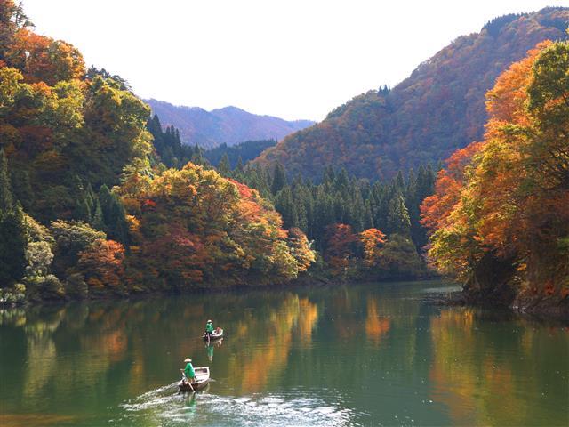 会津地方の三島町と金山町との町境を流れる只見川の渓流は、夏の朝や夕方に川霧に包まれて幻想的な景観が見られることから「霧幻峡(むげんきょう)」と名付けられています。かつて生活の足だった只見川の渡し舟。4月下旬~11月中旬には、その霧幻峡を和船に乗って景観を楽しむ観光用渡し舟が運航しています。