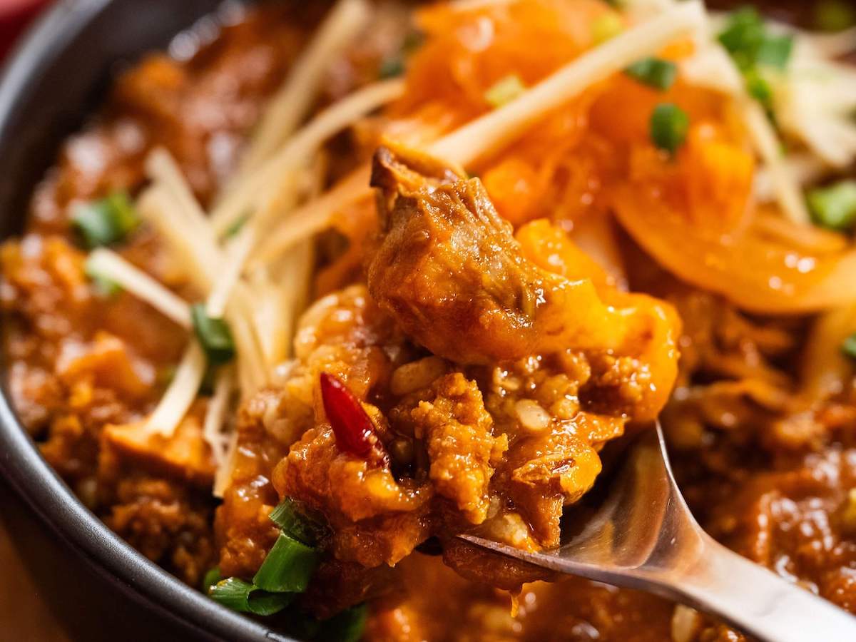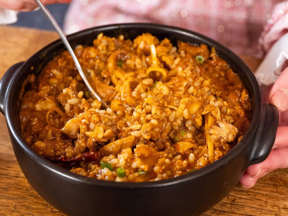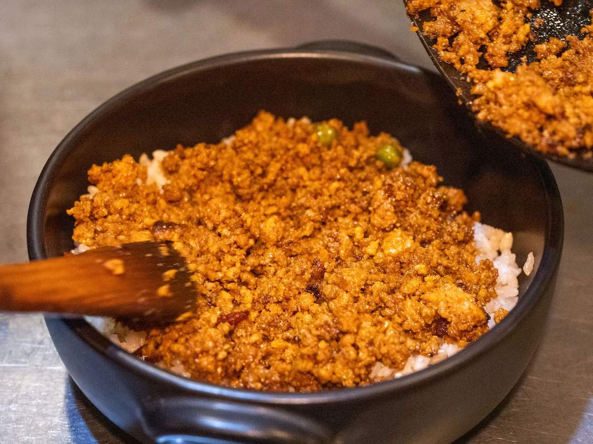 2度びきした鶏ひき肉を使用することで、より細かさとパラパラ感を高めているのだそう。鶏ひき肉のパラパラ具合を保ちながらも、口に含んだ瞬間にキーマのうま味がじゅわ~と広がります。噛めば噛むほどにあふれ出るうま味に感動!
