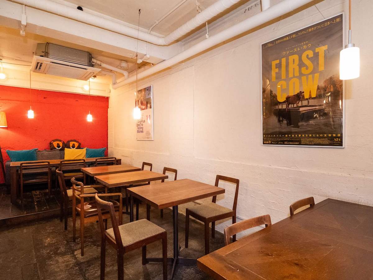 名作映画のポスターがセンスよく飾られたこだわりの空間には、テーブル席をはじめソファー席やカウンター席を完備。これらのポスターは映画配給会社出身のオーナーがセレクトしたものだそう。待ち時間にゆっくり眺めてみるのも楽しいですよ。