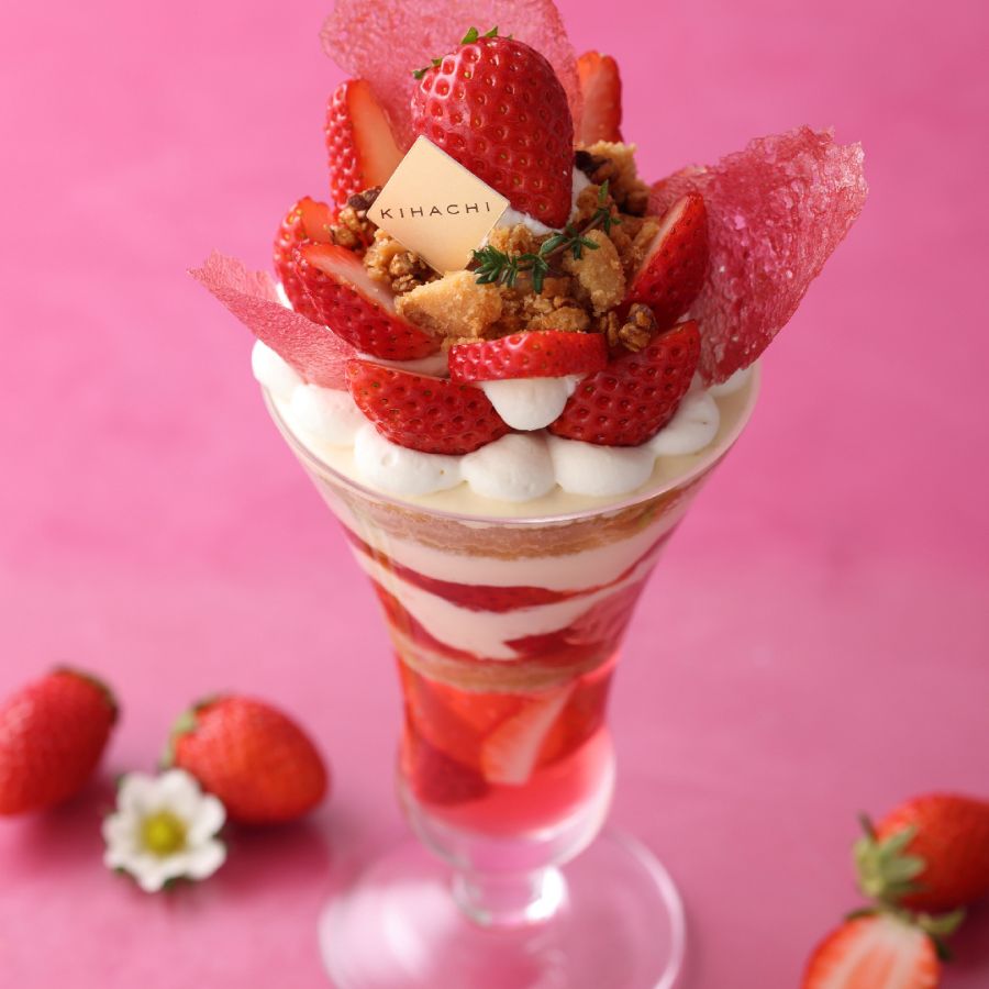 【キハチ カフェ】たっぷりの国産イチゴ×濃厚なティラミス仕立ての新作パフェなどを楽しむ「春のストロベリーフェア」開催中