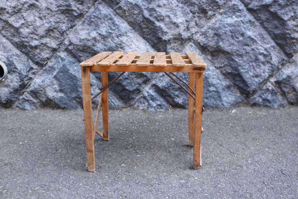 組み立て式のアンティークテーブル。用意されているひとつずつのモノに味わいがあります。