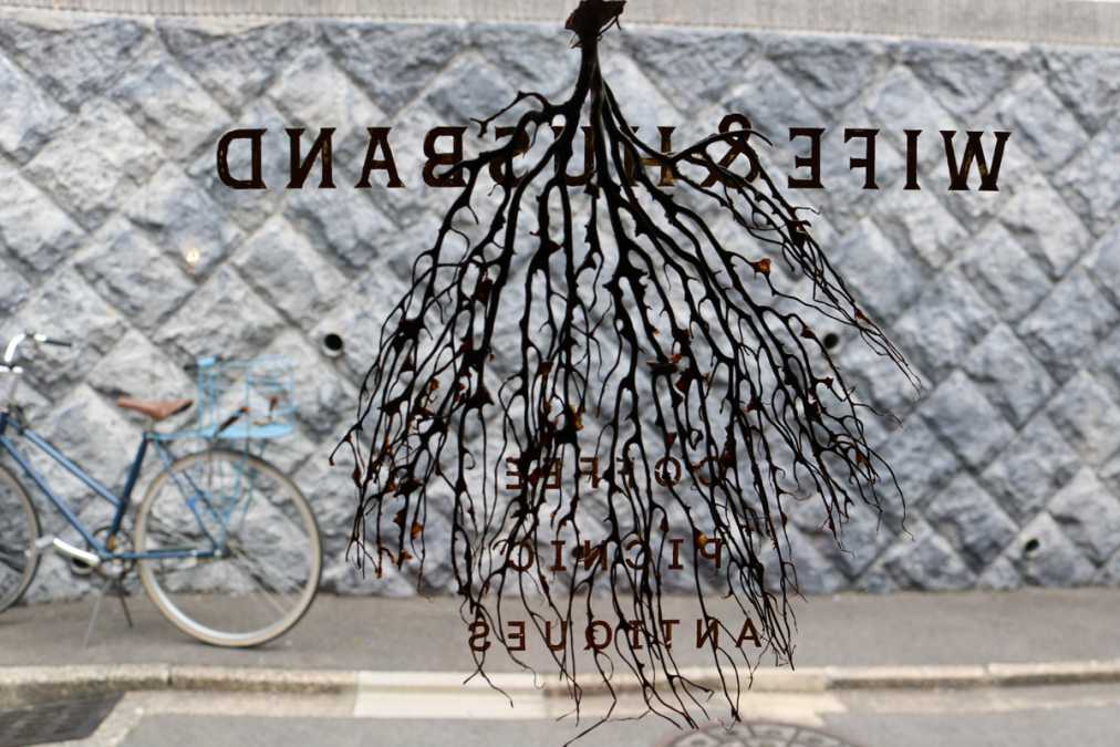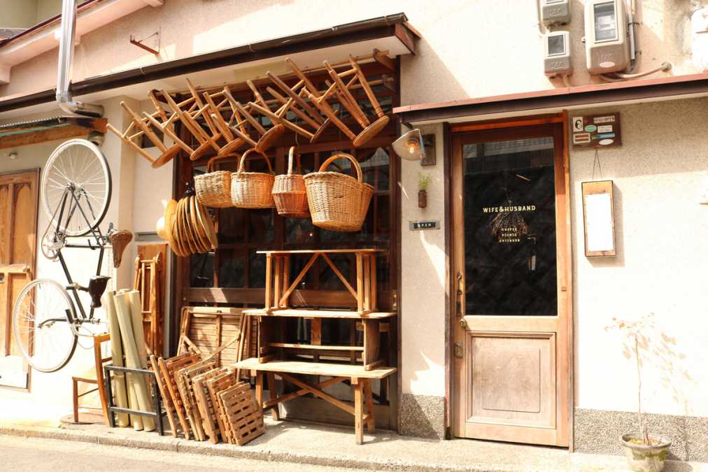 地図で見れば、烏丸北大路のすぐ近く。わかりやすい大きな道と鴨川の交差する一角なのに、店のある場所は目立たない、とても細い路地。隠れ家的なお店の軒先にはピクニック道具のアンティークな椅子やカゴ、折りたたみのテーブルが並べてあります。