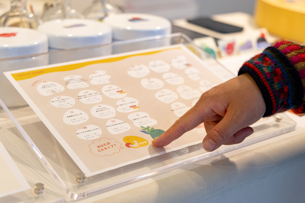 カウンターでもらえるリーフレットには、それぞれのタイプの性質や起こしやすい不調などの説明が書いてあるので、ドリンクを飲みながらじっくり読んでみましょう。「そうそう!」と納得の内容や体や心に関する新たな気付きがあるかもしれませんよ。