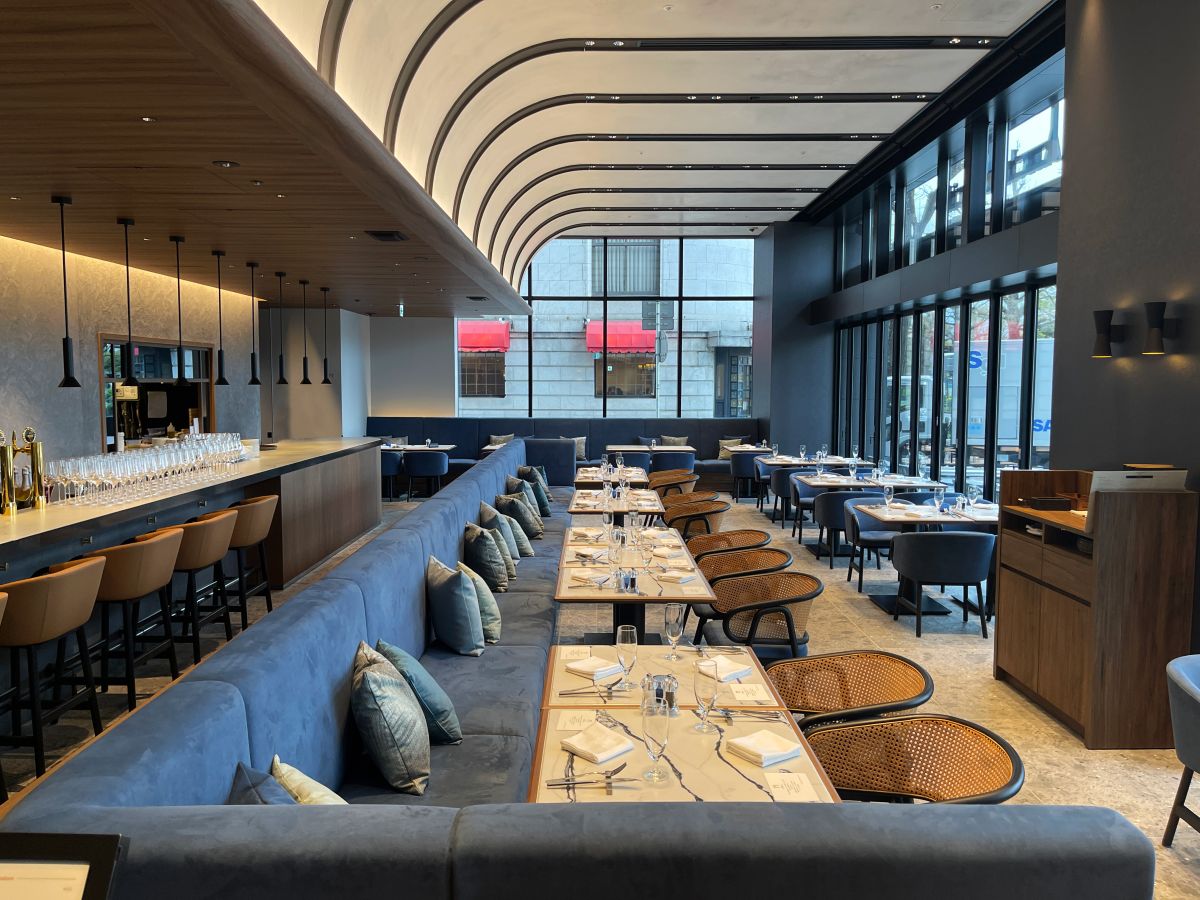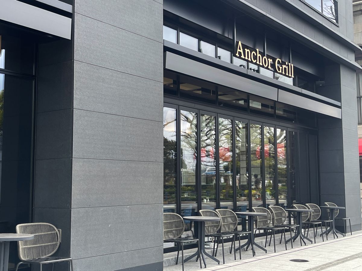 ホテル1階、「山下公園」の向かいにあるのがオールデイダイニング「Anchor Grill Yokohama(あんかー ぐりる よこはま)」。「ザ・ゲートホテル」系列で初の路面店で、海風や元町の異国情緒を直接感じられる心地よい空間です。「山下公園」からそのまま続いているかのようなテラス席は、ペットの同伴が可能なのもうれしいポイントです。