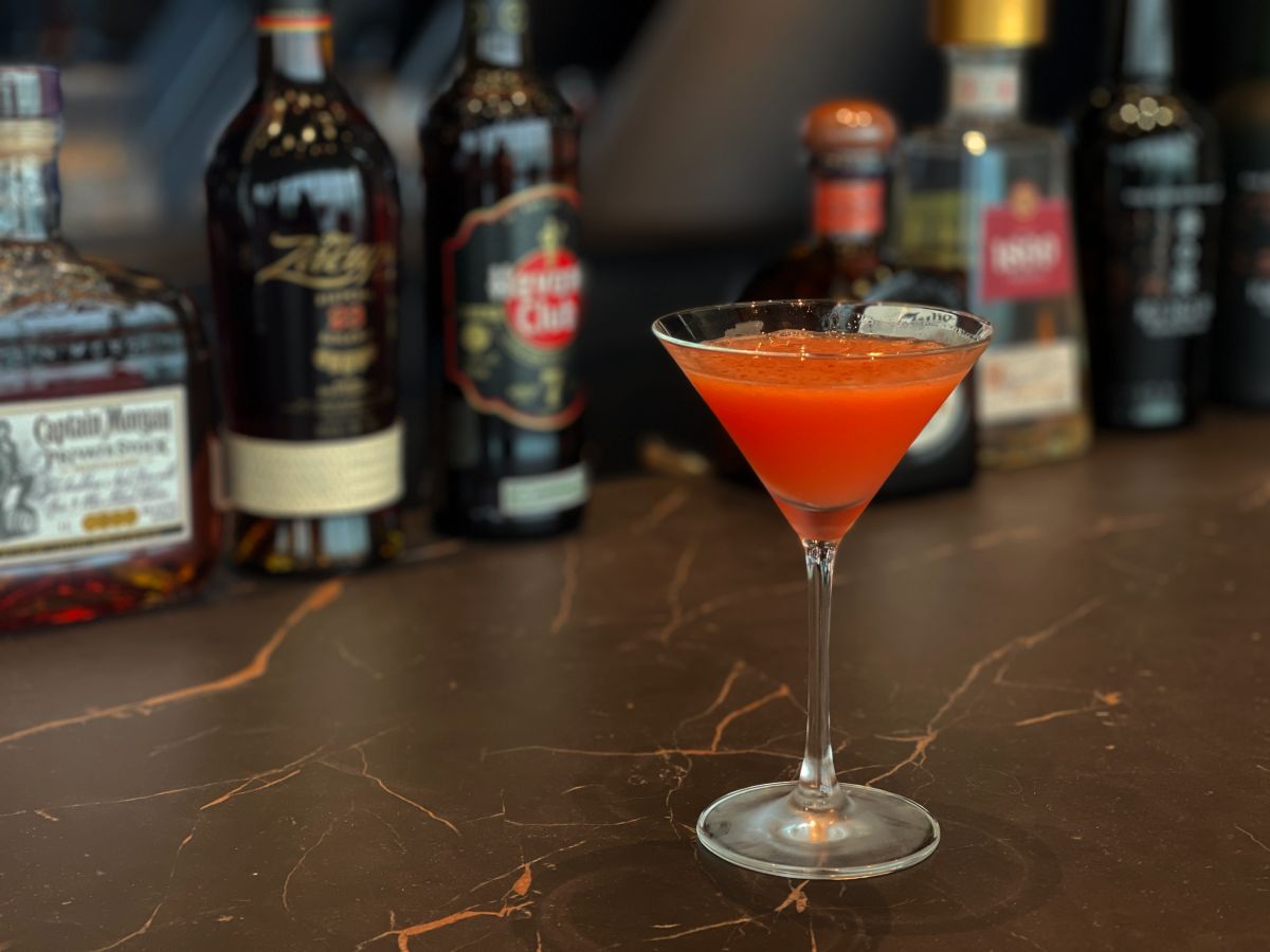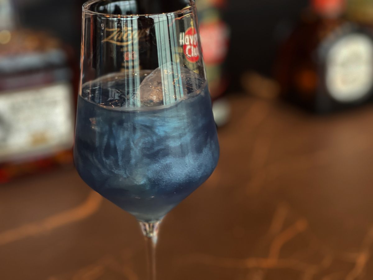 キラキラと輝いているのはライチ味のパールリキュールが入っているから。グラスの中でふわふわと漂い、どんどん表情が変わっていく様子はまるで本物の空の変化のようで、見ているだけでも楽しい。クランベリージュースも入っているので、見た目に反して甘さがありとても飲みやすいカクテルです。
