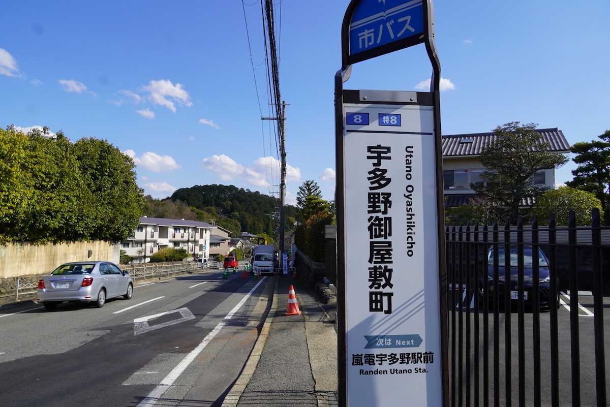 四条烏丸駅から市バス8号系統(高雄・栂ノ尾行)で宇多野御屋敷町下車すぐ