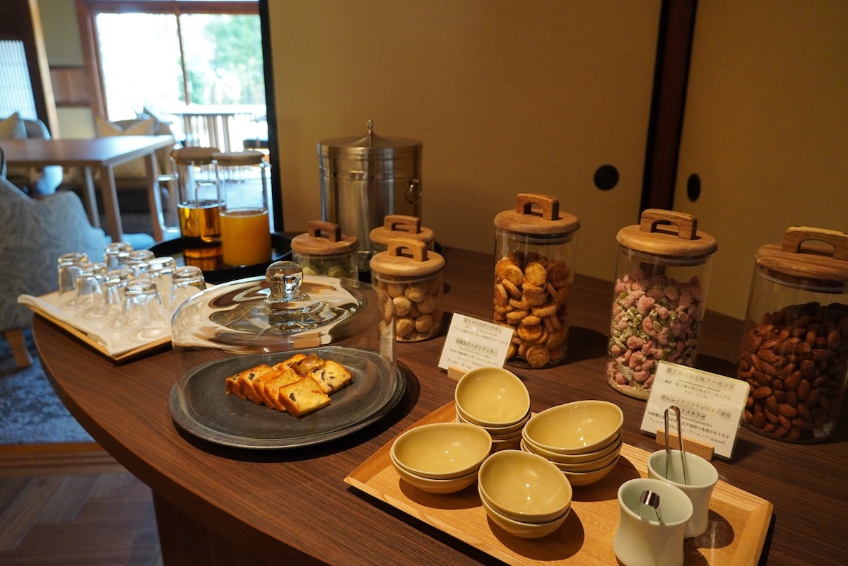 そのほかにもセルフサービスで自家製のスナックやコーヒー、紅茶、ジュースなどをいただけます。
