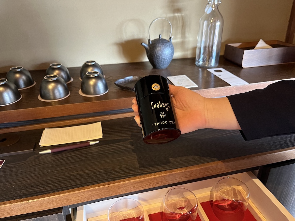 部屋のお茶は京都の老舗「一保堂茶舗」の茎煎茶、コーヒーは同じく京都「小川珈琲」のものです。