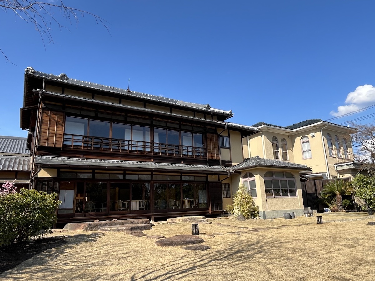 スパニッシュ風の洋館は、レトロな雰囲気がとっても素敵な「樟(くすのき)」。かつて玄関として使われていた場所がティースペースです。