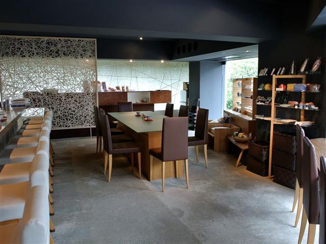 仁和寺散策の後に立ち寄りたいカフェ「御室 (おむろ)さのわ」。和モダンの雰囲気が素敵な空間で、洋菓子とこだわりの日本茶をいただきましょう。