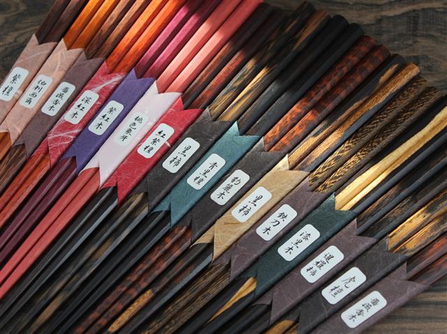 日本初の誂え(オーダーメイド)御箸の専門店。使う人の身長が分かれば、そこから使いやすいサイズを割り出して誂えてもらえるお箸は知人のプレゼントや自分へのおみやげにピッタリです。お気に入りの材を選ぶのもたのしいひととき。