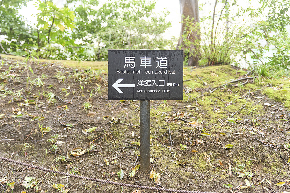 「旧岩崎邸庭園」の正面玄関へと続く道には、「馬車道」と書かれた立て看板があります。これは、明治時代の当時に馬車で行き来していた道であることから。現在は歩いてここを上り、洋館の正面玄関へと行きます。ゆるやかな坂になっていますが、道沿いに咲く季節の花々を眺めつつ、楽しみながら上りましょう。馬車でこの道を通っていたなんて、当時の華やかな生活が想像されますよね。