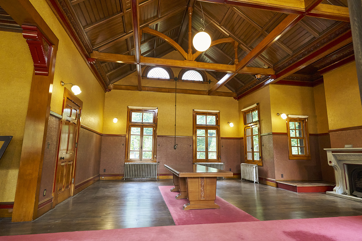 こちらが、撞球室。中に入ることはできませんが、外から眺めることは可能。当時はここで男性たちがビリヤードをして楽しみました。開放的な天井からは、また洋館とも違った、洗練された趣が感じられます。