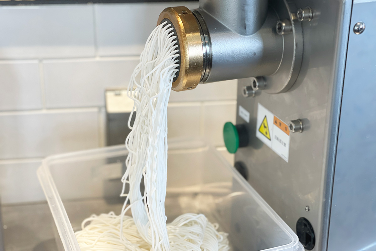 「Stand Bò Bún」の「ブン」は、ベトナム流の作り方を取り入れつつ、新潟の米を使用した米粉を使い、日本の気候やその日の湿度に合わせて水分量を微調整。米粉は一晩寝かせて発酵させてから製麺するというベトナムの工程をベースにしながらも、製麺のプロセスは独自に工夫を重ねているのだとか。
