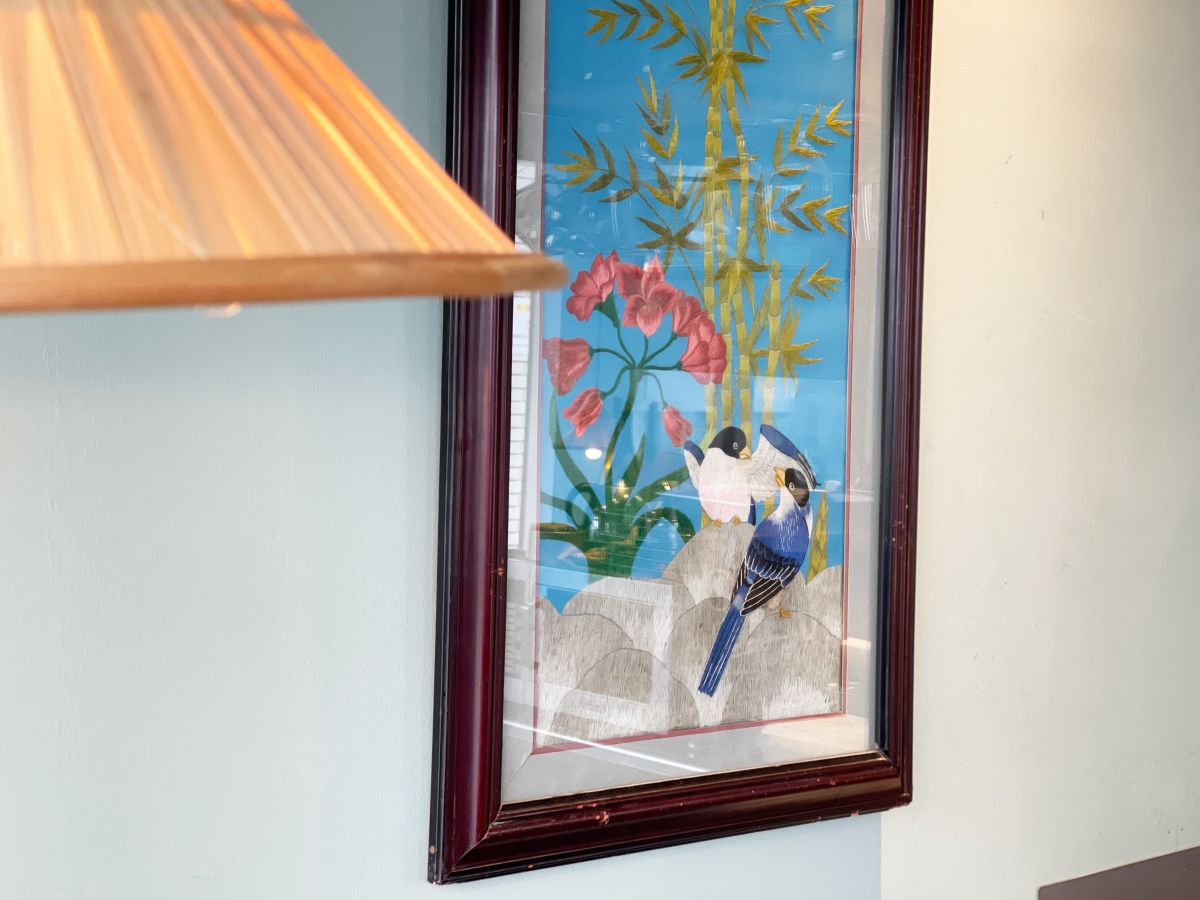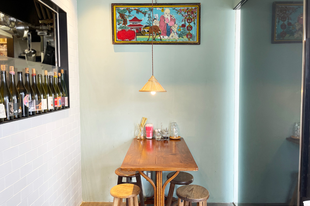 店内に飾られているアートは、ベトナムの骨董品店で見つけたものだそう。ランプの傘も現地で調達しているとあって、日本にはない空気感が漂っています。